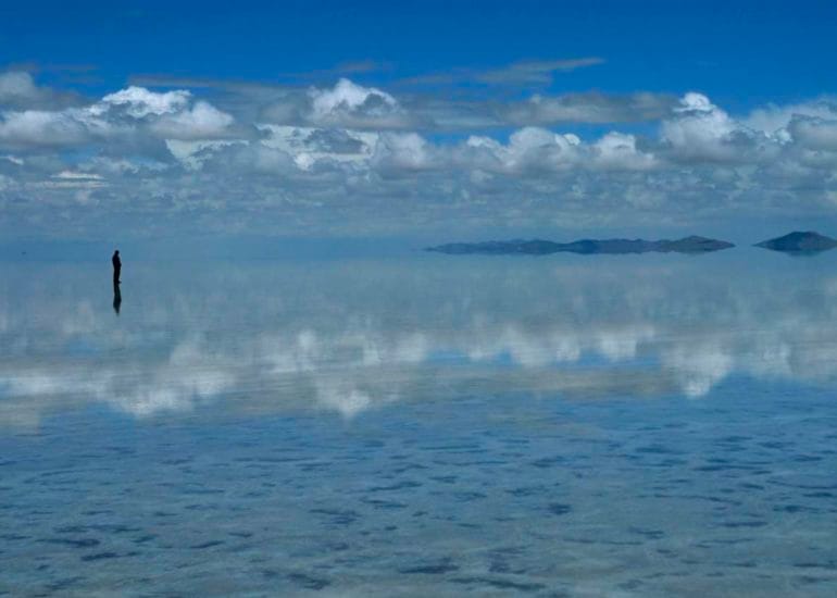 Después de lluvia, los salares bolivianos de Uyuni y Coipasa se llenan de reflejos mágicos